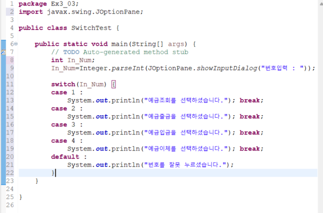 일치하는 값이 하나도 없을 때에는 default 문 뒤의 문장을 수행한다