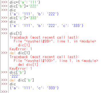 하지만 딕셔너리는 쌍을 추가할 때 키를 지정하여 value값을 넣는 방식이다