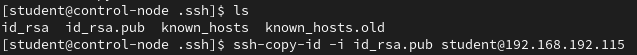 신뢰있는 ssh 연결을 위해 control-node에서 생성한 ssh키(id_rsa와 id_rsa.pub)를 node1에게 전달